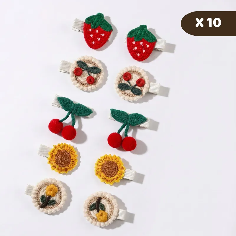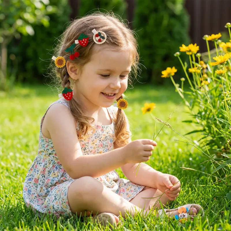 Gledelige broderte hårspenner gjør vanlige morgener om til spennende stylingøyeblikk. Myke deler føles skånsomme mot fine hårstrå under lek. Sikkre spenner holder luggen unna nysgjerrige øyne hele dagen. Matchende fruktige blomster skaper bildeperfekte frisyrer til utflukter sammen.
