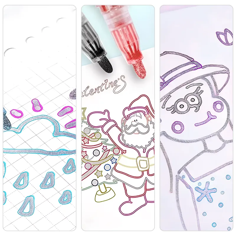 outline marker, metallic marker, outline gel pen, coloured gel pen
