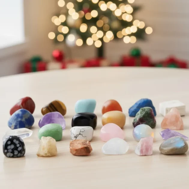 Sønnen min ber meg gjette hvilken edelsten som kommer neste gang. Vi har funnet på historier om steinene, og de ser fine ut på hyllen hans.