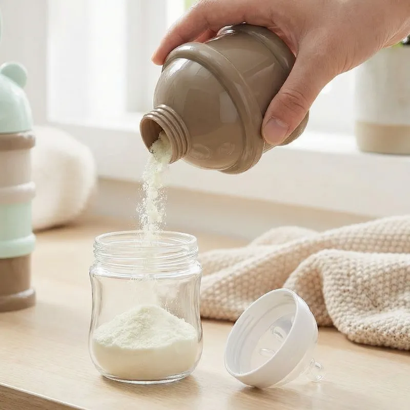 Dette gjør turer til lekeplassen enkle. Å helle ut morsmelkerstatning går kjapt, og delene blander seg aldri.