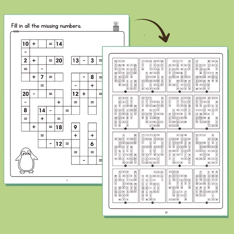 Hver side byr på en ny måte å øve på viktige tallferdigheter. Se barnet ditt løse oppgaver og samtidig bygge sterke problemløsingsvaner. Denne engasjerende boken fanger interessen og gjør matte til en favorittaktivitet.