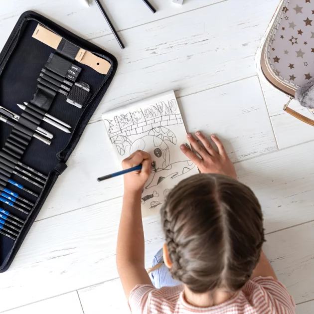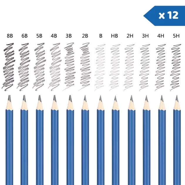 Jeg bruker dette blyantsettet både på skolen og i helgene når jeg tegner. Utvalget hjelper meg å være kreativ på ulike måter.