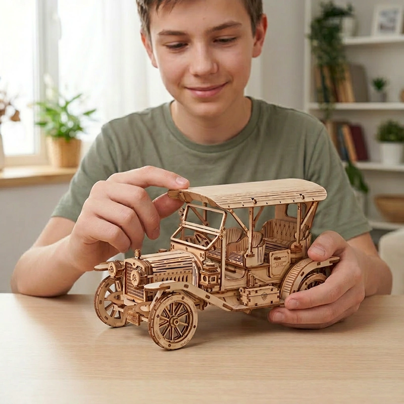 Å bygge dette intrikate puslespillet vekker nysgjerrighet og undring hjemme. Hver brikke passer perfekt for et tilfredsstillende og givende prosjekt. Barn får tålmodighet, eventyrlyst og stolthet fra hver fullførte del. Å stille ut den ferdige bilen gir varig glede og beundring.