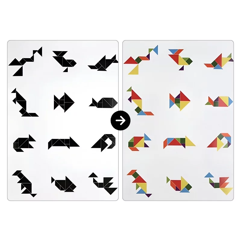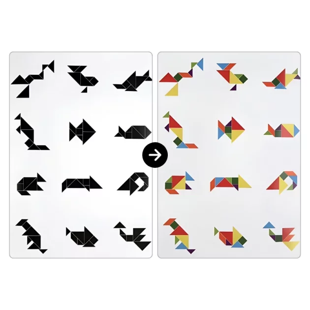 Dette tangram-spillet holder broren min og meg opptatt i timevis! Vi elsker å mikse formene for å lage morsomme dyr og kule puslespill. Det er supergøy.