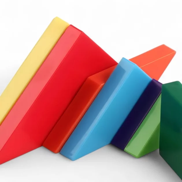 Tangram-settet gjør det gøy å lære former. Noen ganger liker jeg å sortere etter farge også. Fine og trygge brikker.