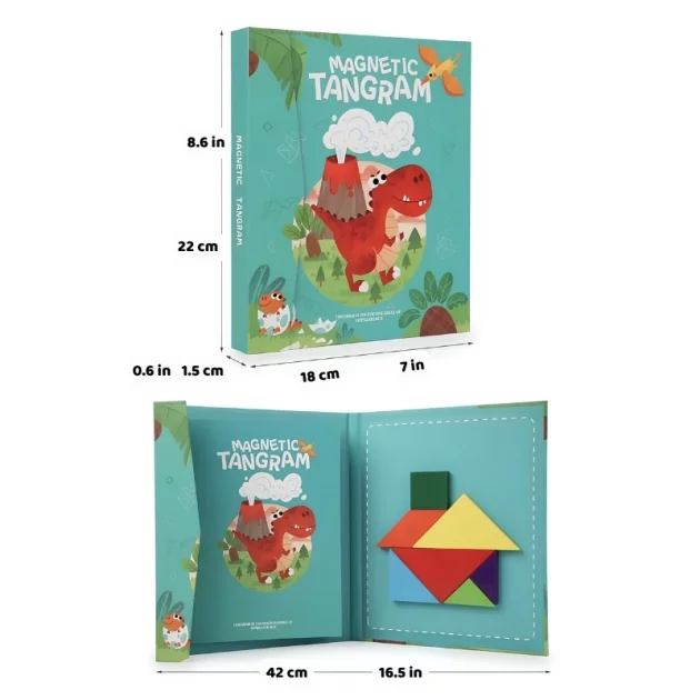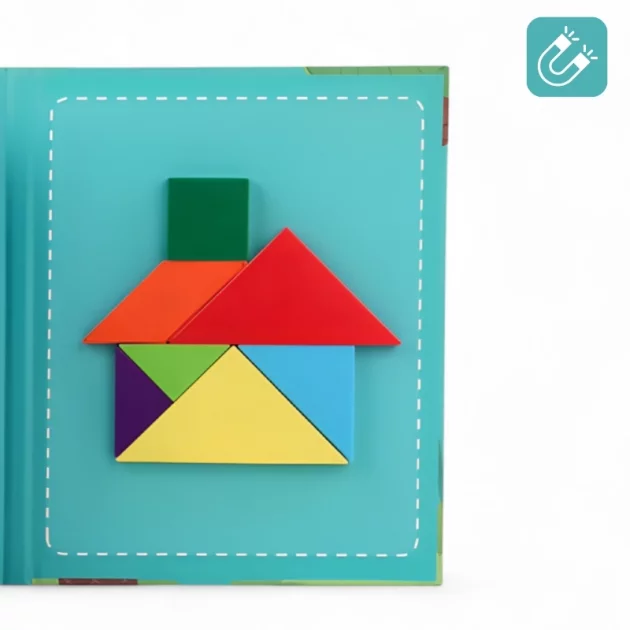 Vi lekte med dette tangrammet hver kveld etter middag. Mamma er også med, og vi lager biler, raketter eller fugler. Magnetene fester veldig godt og faller ikke av.