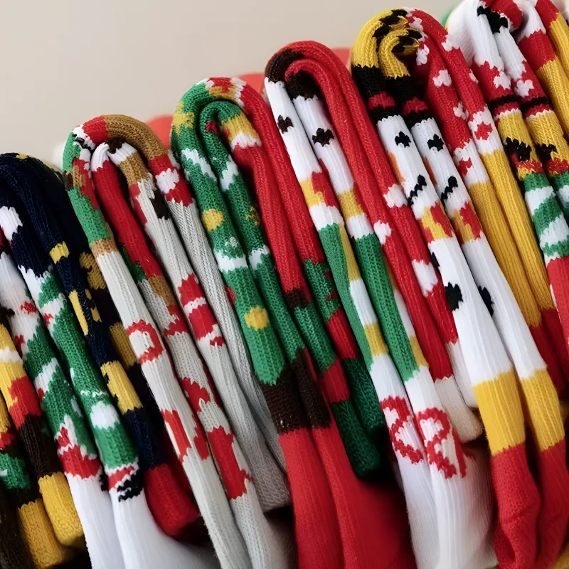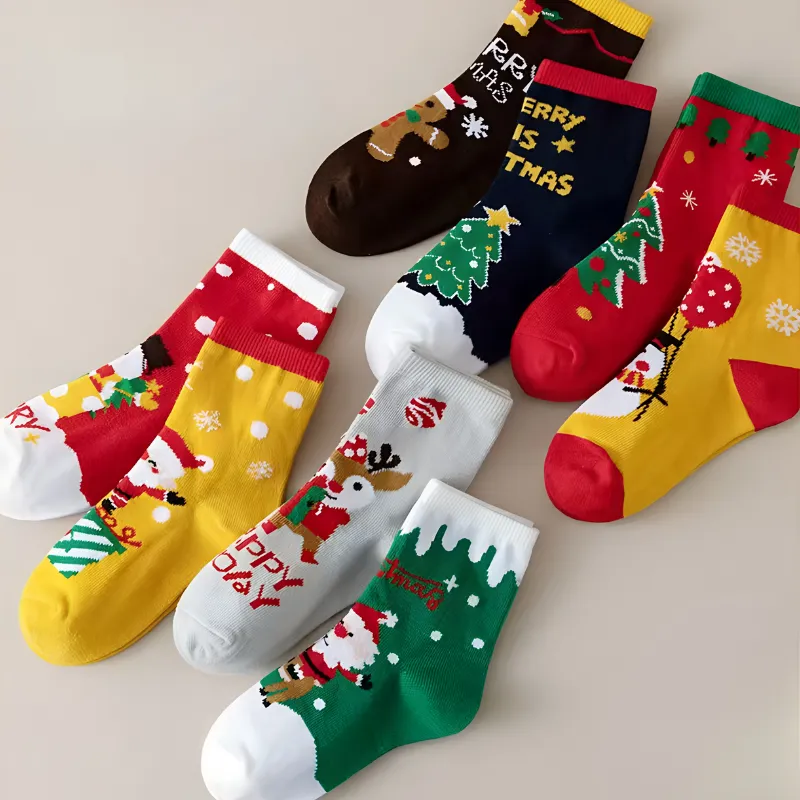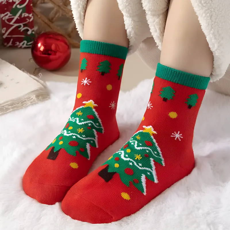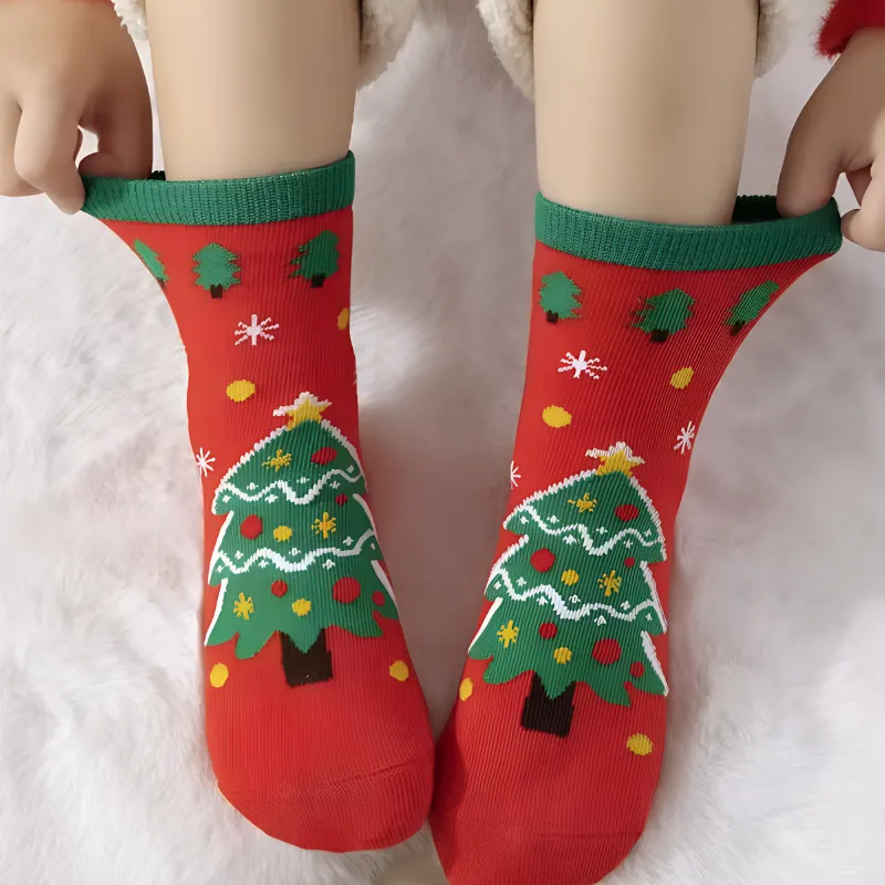 Vi elsker disse festlige sokkene. Barna bruker dem med både støvler og joggesko og sier de aldri sklir ned, selv når de løper rundt.