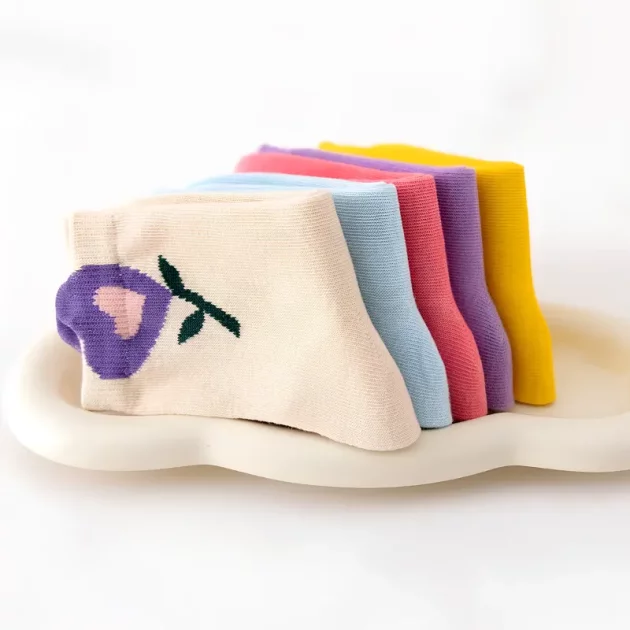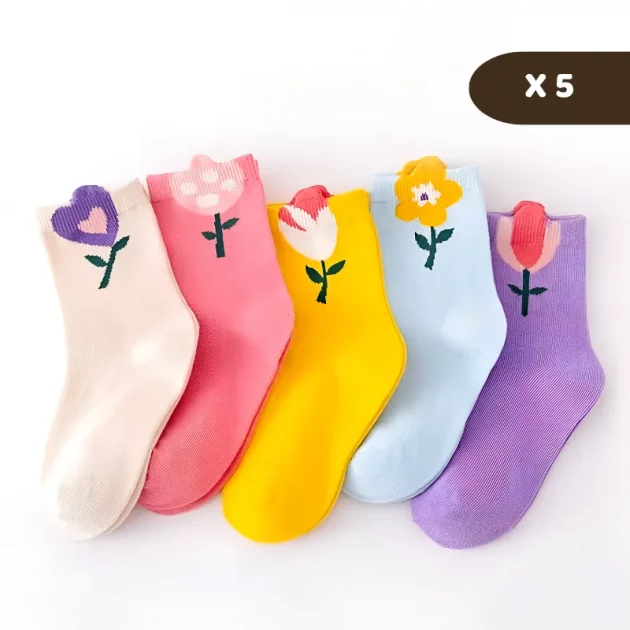 5 par søte, fargerike sokker med blomster til barn