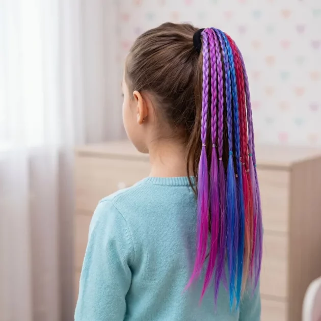 Disse små flettene reddet morgentravheten før skolen. Jeg drar én over hestehalen hennes, og den ser straks klar for fest ut uten ekstra innsats.