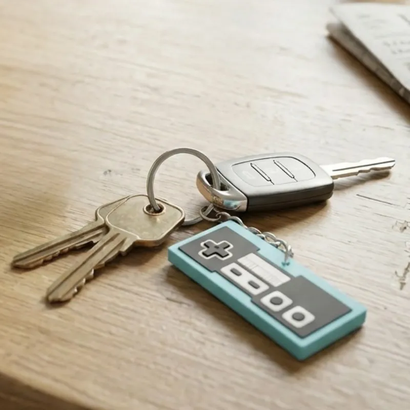 Kjøpte dissenøkkelring til sønnens sekk; han bytter design hver dag og husker faktisk nøklene sine nå. De sterke fargene gjør morgnene roligere.