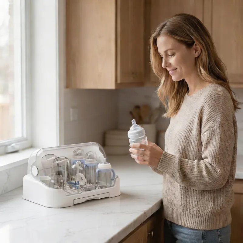 Veldig fornøyd med det sikre lokket. Nå bekymrer jeg meg ikke for at noe skal falle ned i babyens flasker. Det føles veldig trygt.