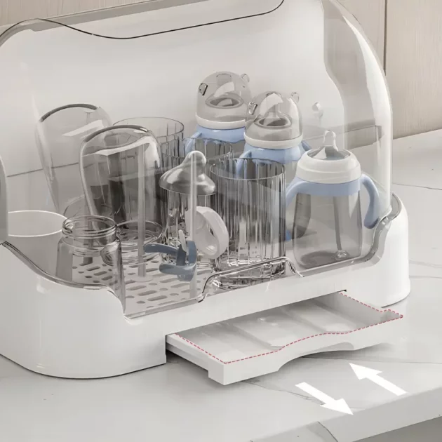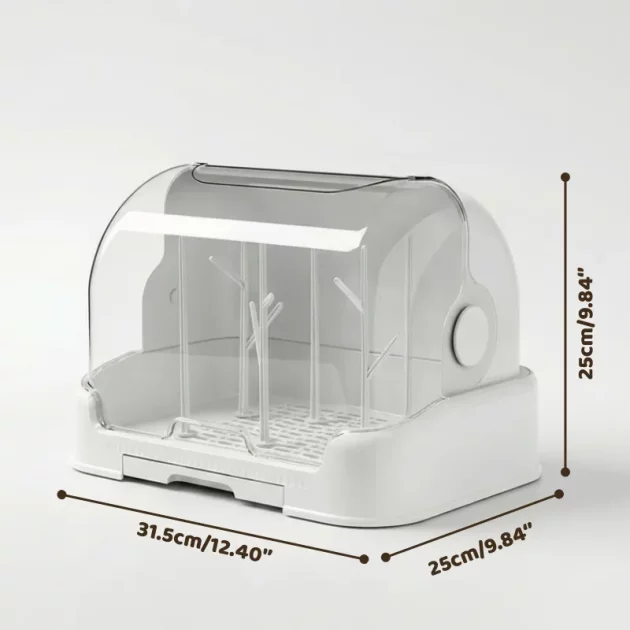 Elsker hvordan babyens flasker holder seg støvfrie i denne tørkeboksen. Gjør livet mitt enklere og holder alt på ett ryddig sted.