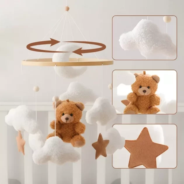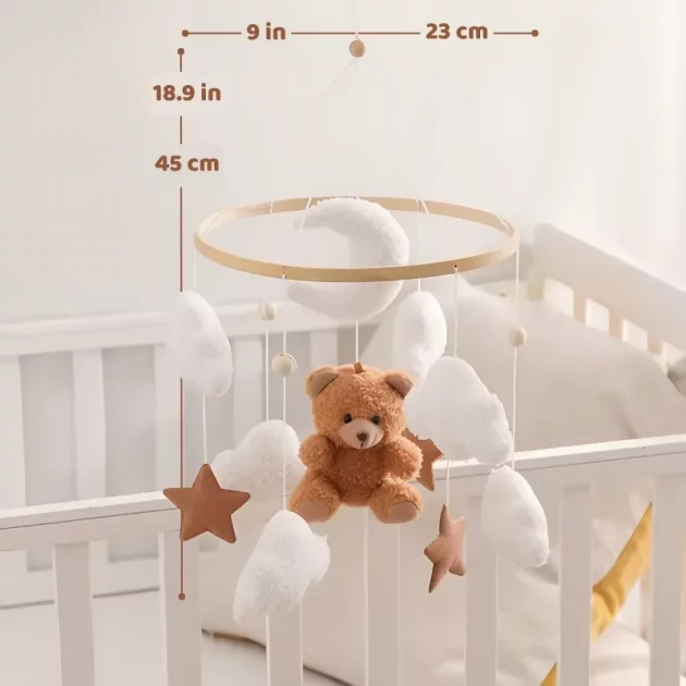 Den stille, jevne bevegelsen av det hengende leketøyet gir fred. Det er perfekt for å berolige vår nyfødte før søvn. Et essensielt produkt for barnerommet.