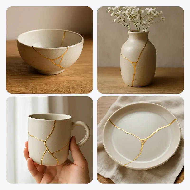 Brukte dette keramikksettet med tvillingene mine på en regnfull søndag. De reparerte forsiktig to hakkede boller og gjorde dem om til glitrende minner vi nå bruker hver dag.