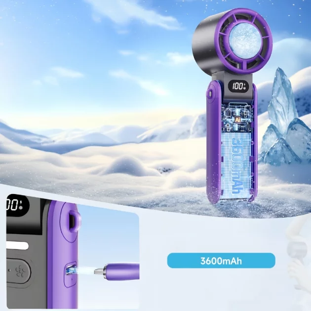 Fleksibel bruk - Viften kan enkelt byttes mellom håndholdt, nakke- og bordmodus. Lett design og kraftig batteri støtter lange eventyr utendørs.