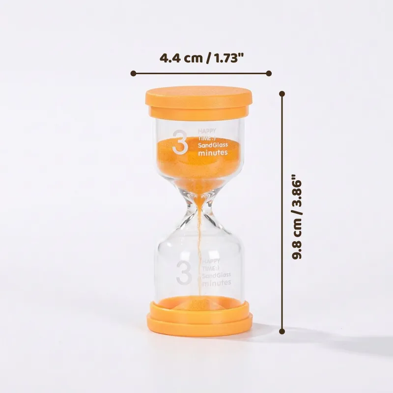 Jeg bruker dette timeglasset under tannpussen om kvelden. Barna ser på sanden i stedet for å klage, og de pusser lenge nok uten at jeg må telle.