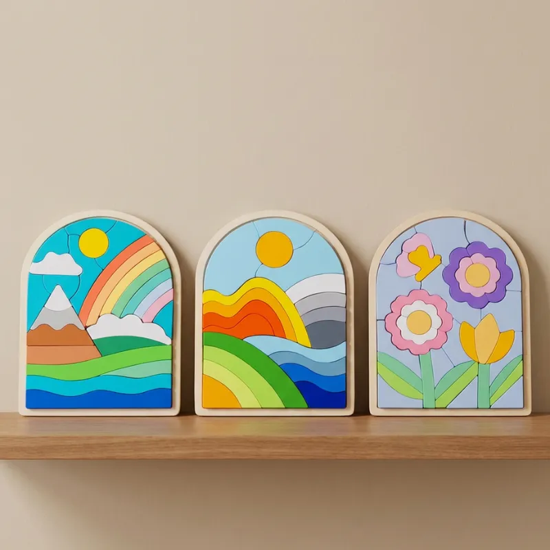 La fantasien blomstre med hver livlige trebrikke. Problemløsningsferdighetene utvikles når barnet ditt utforsker puslespillet. Hendene holdes i aktivitet mens de oppdager unike former og vakre mønstre. Læring føles gledelig og stressfri for familien deres.