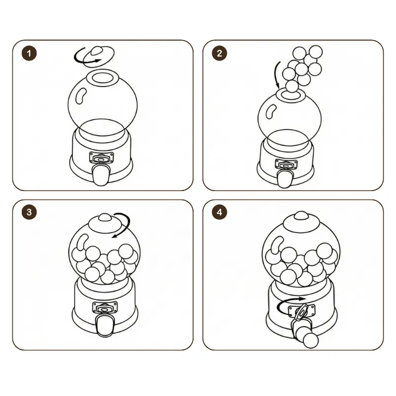 Barn vil elske å dele ut fargerike godterier fra denne sjarmerende enheten. Den lyser opp ethvert rom, og skaper smil og begeistring hver gangteriene dukker opp. Foreldre setter pris på den enkle mekanismen og den lettvinte påfyllingsprosessen. Nyt en hyggelig aktivitet som oppmuntrer til deling blant venner og familie.