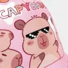 Datteren min valgte kapybara-hatten selv og bruker den nå på hver tur. Mykt stoff som er skånsomt mot huden hennes, og stroppen holder den på plass.