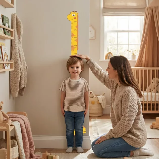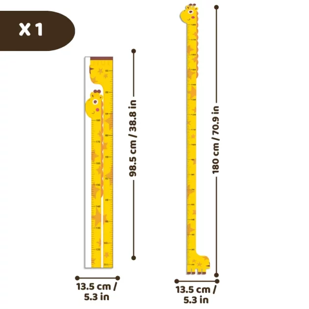 Vi dokumenterte sønnen min sitt årlige høydepsprang med giraffen. Hver markering føles spesiell, og den kom av veggen uten merker. Perfekt for bilder også.