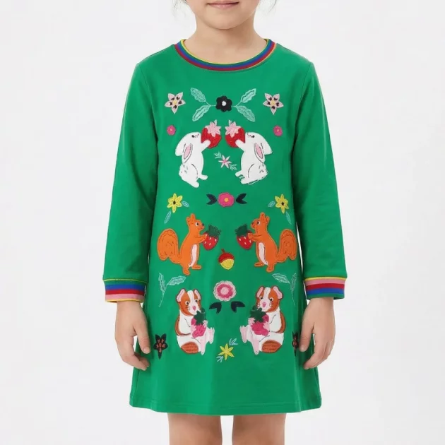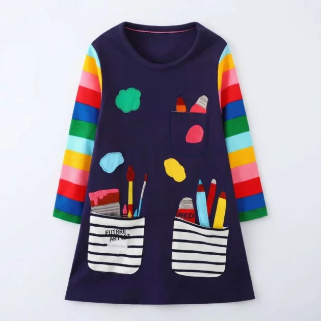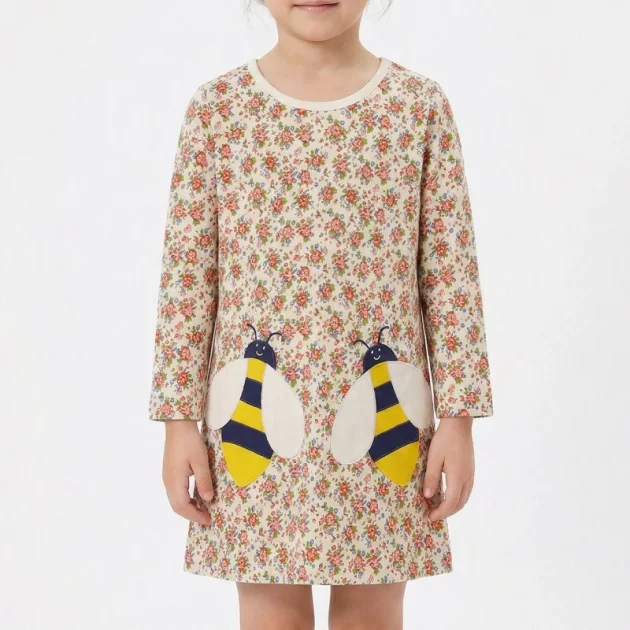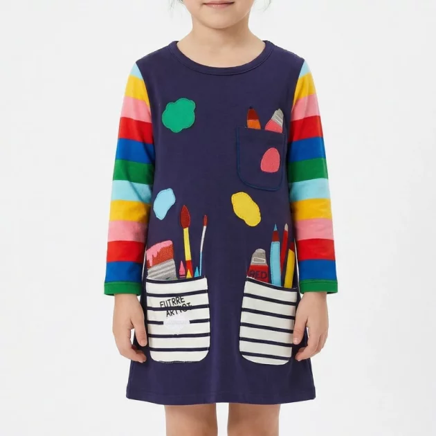 Kjøpte denne søte kjolen til niesen min, og hun snurrer rundt hele tiden. Fargene er glade, stoffet føles mykt, og hun elsker å gjemme klistremerker i lommene.