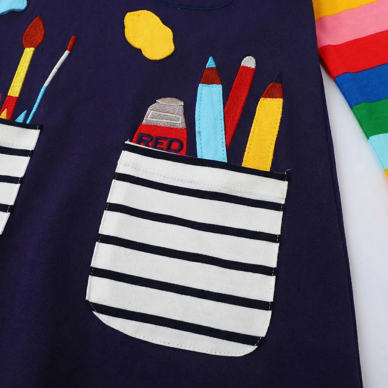 Kjøpte denne søte kjolen til niesen min, og hun snurrer rundt hele tiden. Fargene er glade, stoffet føles mykt, og hun elsker å gjemme klistremerker i lommene.