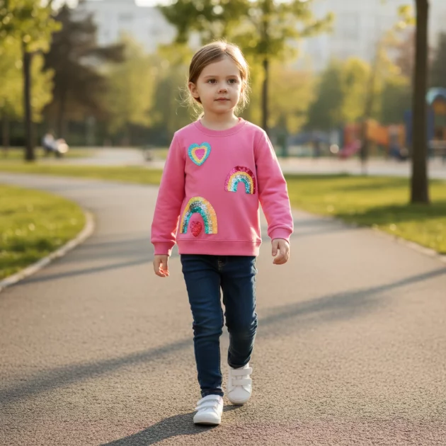 Min datter vil aldri ta av seg denne genseren! Fargene er så glade og den holder henne varm hver kjølige morgen på vei til skolen.
