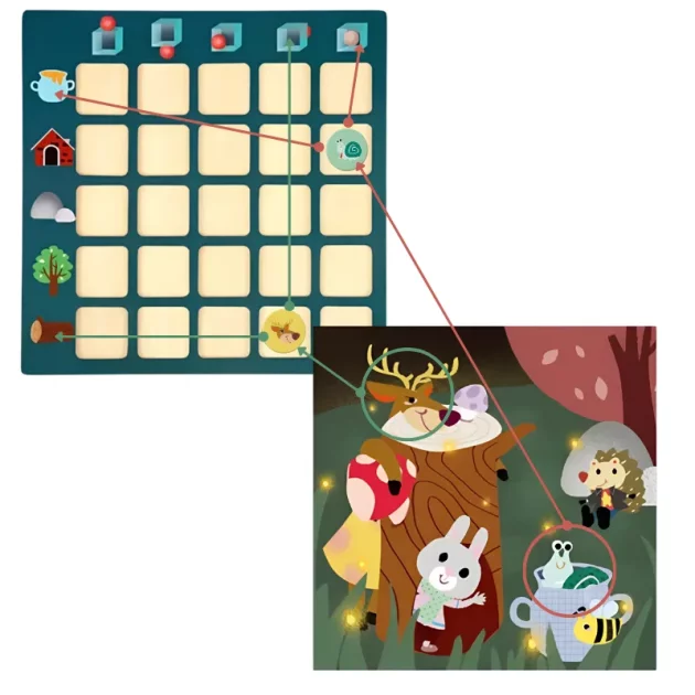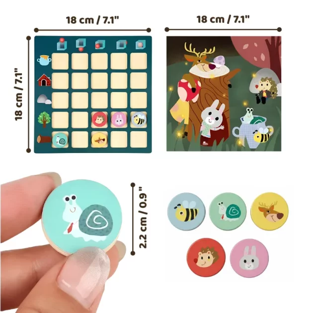 Inspirer nysgjerrighet hver dag mens du holder hjernen aktiv innendørs. Barn liker å oppdage dyr ved å følge morsomme kort med ledetråder sammen. Se dem tenke, matche og le mens selvtilliten deres vokser. Slitesterke trebrikker sørger for trygg, varig underholdning for alle.