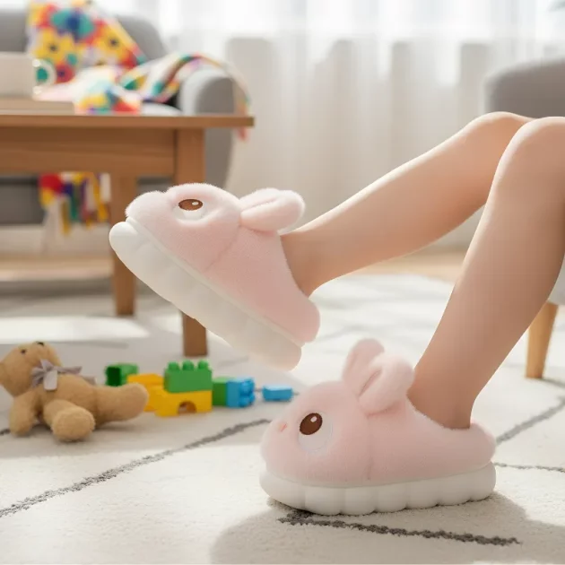 Barn elsker det søte kanindesignet hver eneste dag. Myk plysj føles skånsom og behagelig mot sensitiv hud. Tykk såle gir godt grep og forhindrer at man sklir på gulvet. La glade føtter holde seg varme og trygge innendørs hele sesongen.