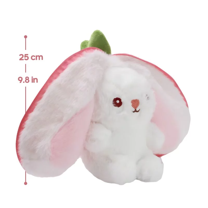 Denne plysjkaninen tilbyr et unikt vendbart design, som gir mer interaktiv leketid. Den ultrasofte følelsen gir en koselig kosevenn for naps og leggetid. Laget av holdbare, barnevennlige materialer, er den bygget for å vare gjennom utallige eventyr. En hjertevarm gave som gir glede og komfort til barnets verden!
