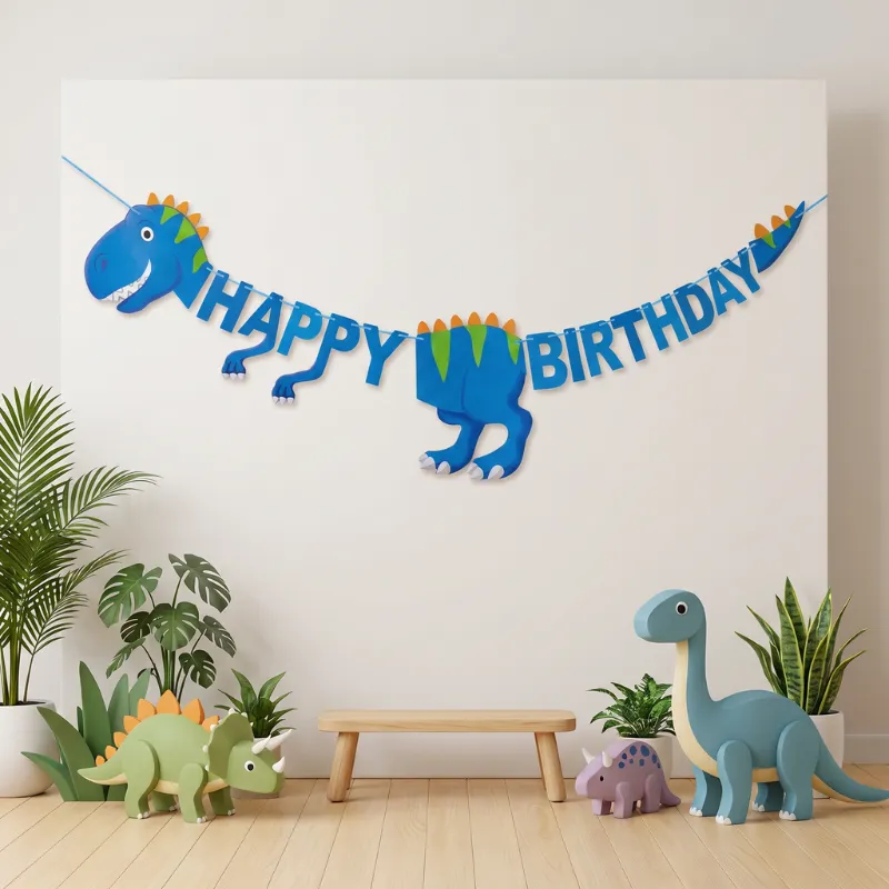 Lyse bannere forvandler umiddelbart vanlige rom til spennende forhistoriske scener. Fargerike skapninger vekker fantasien, mens gjestene ankommer og føler seg imponerte og velkomne. Et enkelt oppsett sparer planleggingstid og lar familien fokusere på å skape gode minner.