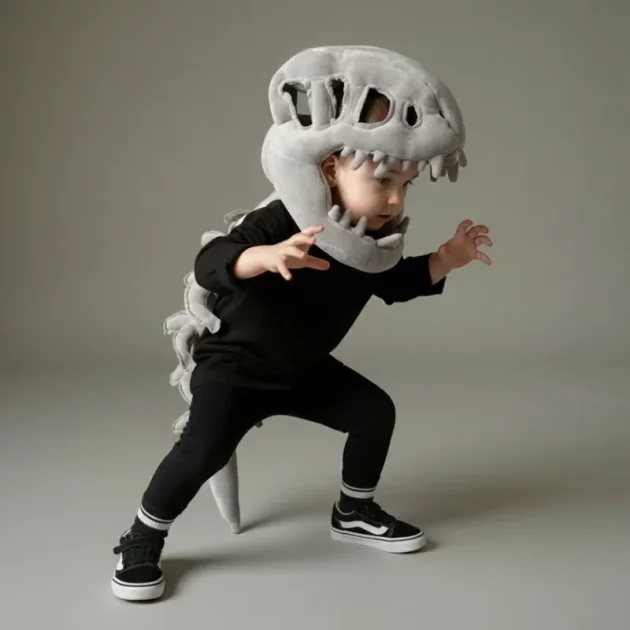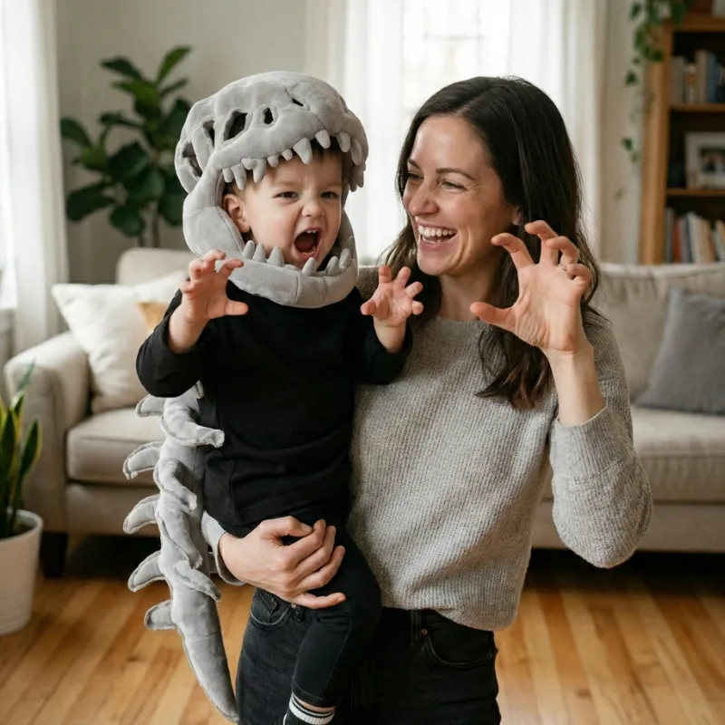 Dette dino-skjelettkostymet gjør lek så morsom. Jeg liker at sønnen min ikke klør eller blir urolig, selv etter mange timer med lek.