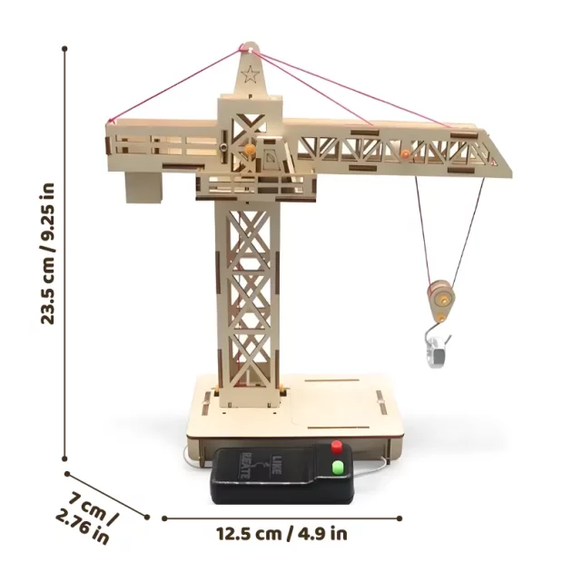 Alle delene er trygge for små barn. Treet føles fint og glatt. Å bruke fjernkontrollen gir meg følelsen av å være en kranfører!