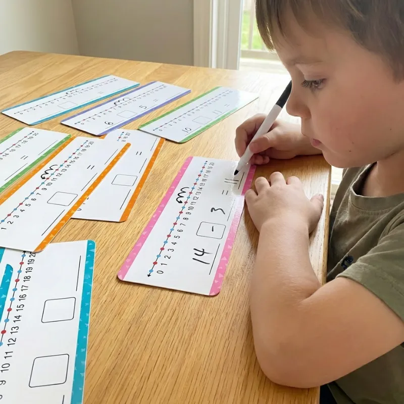 Jeg bruker kortene med datteren min hver kveld. De små trinnene på hver side hjelper henne å holde seg rolig med tall og faktisk like å øve på regnestykker.