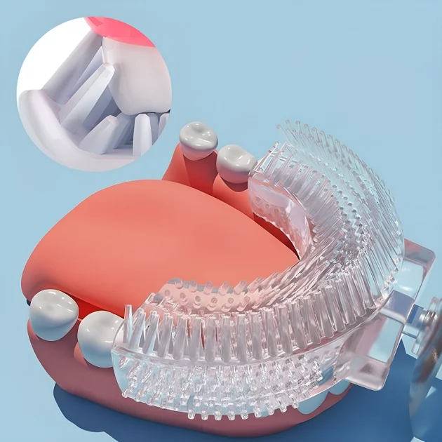 Effektiv - Takket være den unike U-formede designen kommer tannbørsten til i alle kroker i munnen. Den fjerner gjenstridige flekker og forebygger tannråte.