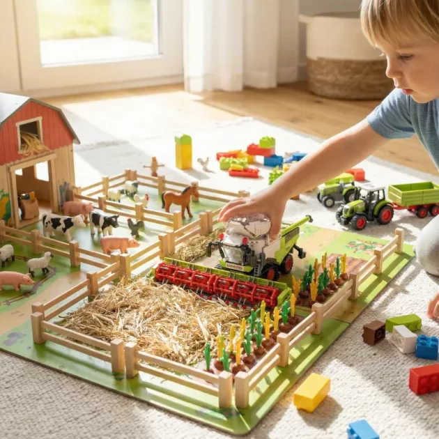 Barn kan bygge sine egne unike landbrukskjøretøy hjemme. Hver fargerik bit passer perfekt og oppmuntrer til fokus og nøyaktighet. Fantasien vokser når de små lager spennende scener med hver kloss. Å se dem lære gir ekte trygghet.