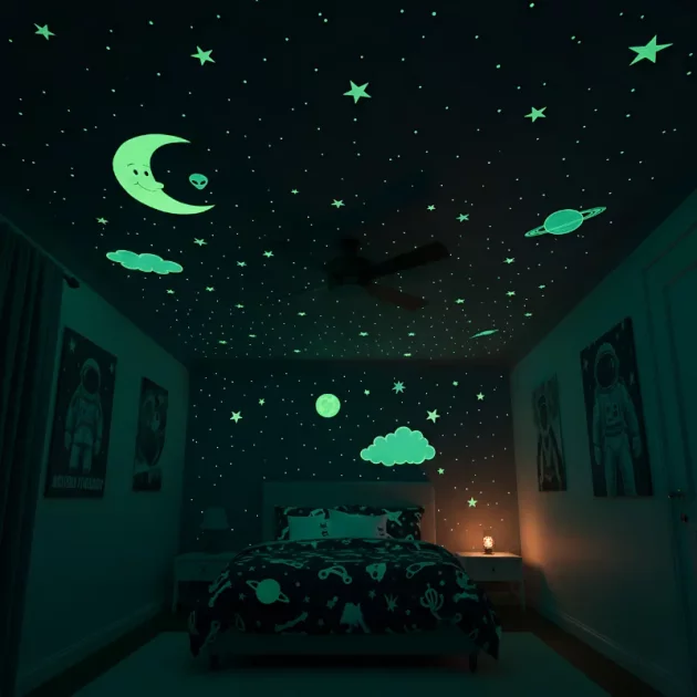 Denne malingen er veldig lett å bruke, og gløden varer lenger enn jeg forventet. Vi laget et veggmaleri på veggen i lekerommet vårt. Elsker det!
