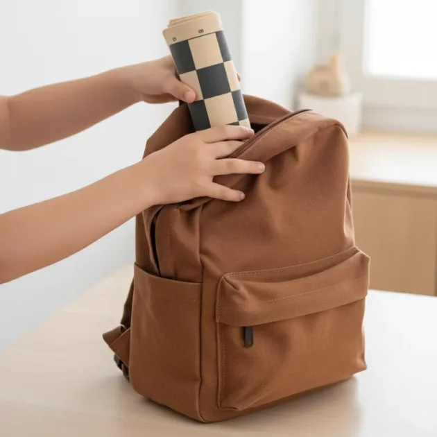 Sjakkbrettet kan rulles sammen til å bli veldig lite, og jeg liker at rommet mitt nå holder seg ryddig. Lillebroren min har til og med lært nye trekk siden vi spiller så mye.