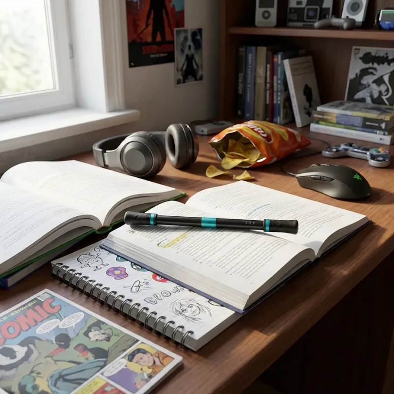 Jeg blir ofte distrahert, men når jeg snurrer denne pennen, klarer jeg faktisk å lese ferdig. Den er super for rastløse hender og holder meg fokusert uten å lage lyd.