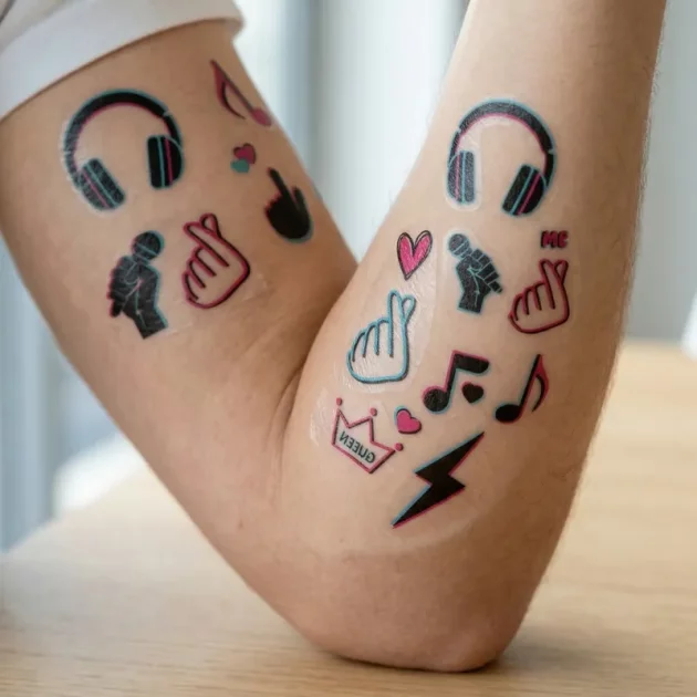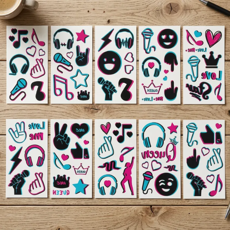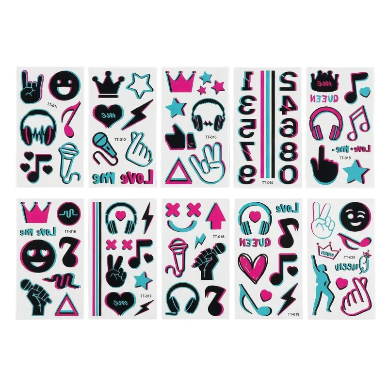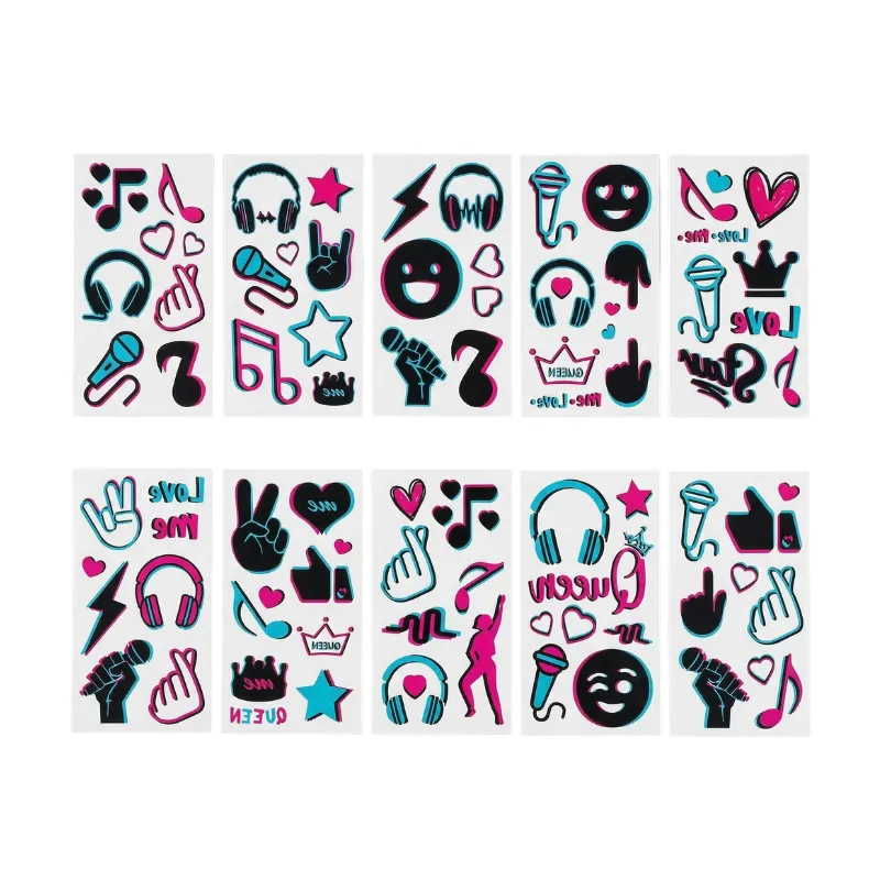 Barn elsker å skape dristige stiler med disse selvlysende klistremerkene. Foreldre kan slappe av, vel vitende om at fjerning alltid er enkel og skånsom. Hver pakke inneholder unike design for musikkelskere og dansere.