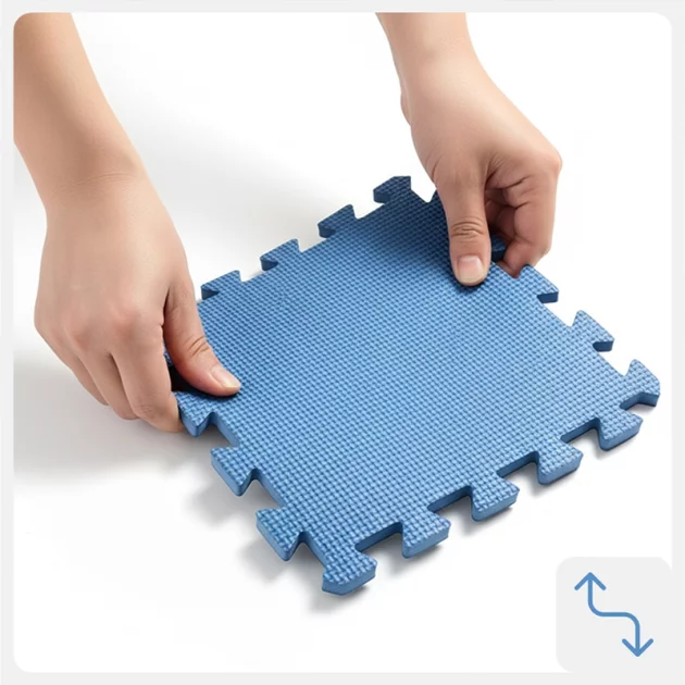Sammenlåsende - Å sette sammen matten er enkelt, takket være dens puslespilldesign. Du kan tilpasse størrelsen og formen for å passe din tilgjengelige plass.