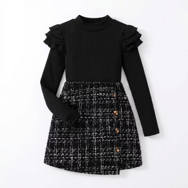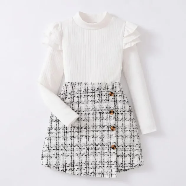 Sett med topp med volanger og rutete skjørt til barn