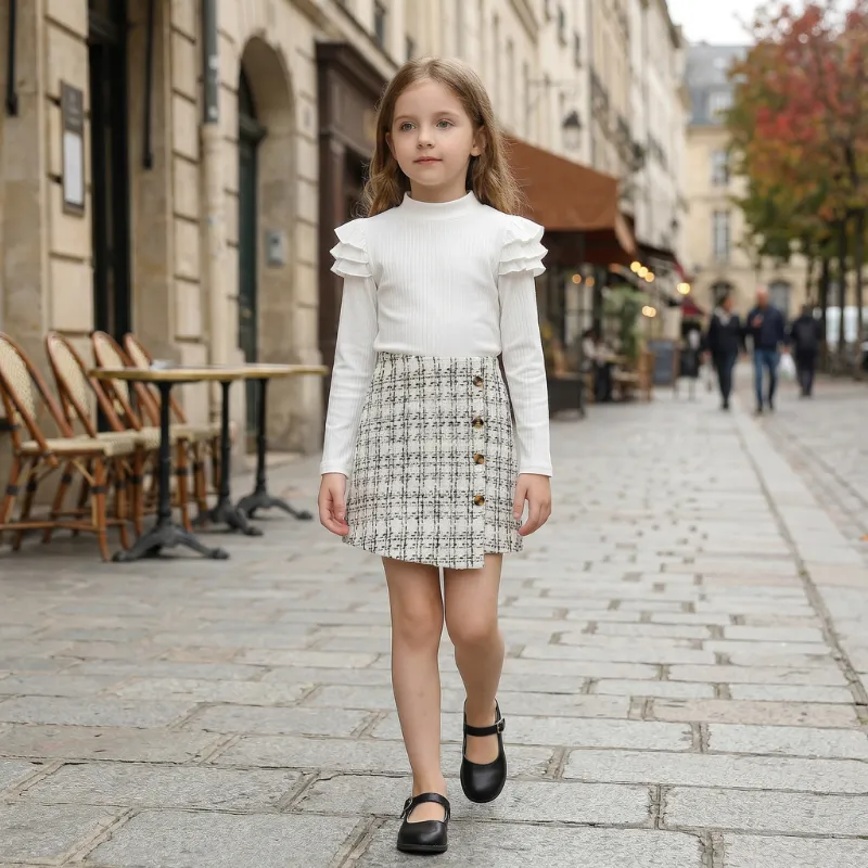 Sett med topp med volanger og rutete skjørt til barn