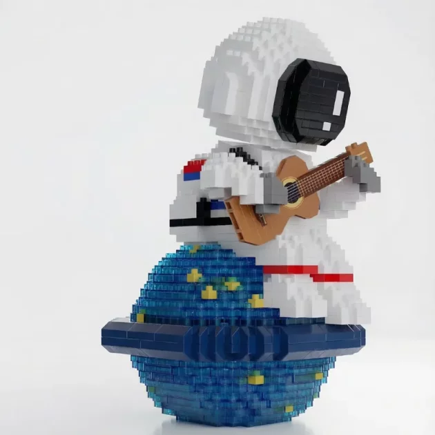 Det utfordret meg på en god måte. Hver kloss passet perfekt. Den ferdige astronauten med gitaren er bare helt super!