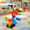 Femåringen min liker å finne opp nye leker med disse klossene. Hun lærte å kjenne igjen farger raskere, og oppryddingen er enkel siden de fester seg sammen.