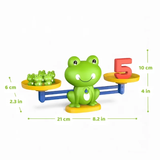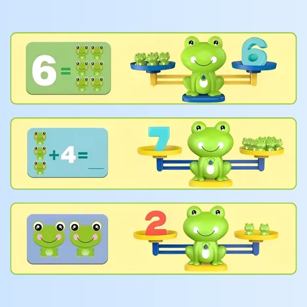 Barnet mitt spør etter froskebalansen hver ettermiddag, og jeg er så glad for å se henne være begeistret for matematikk. De lyse froskene fanger virkelig oppmerksomheten hennes.