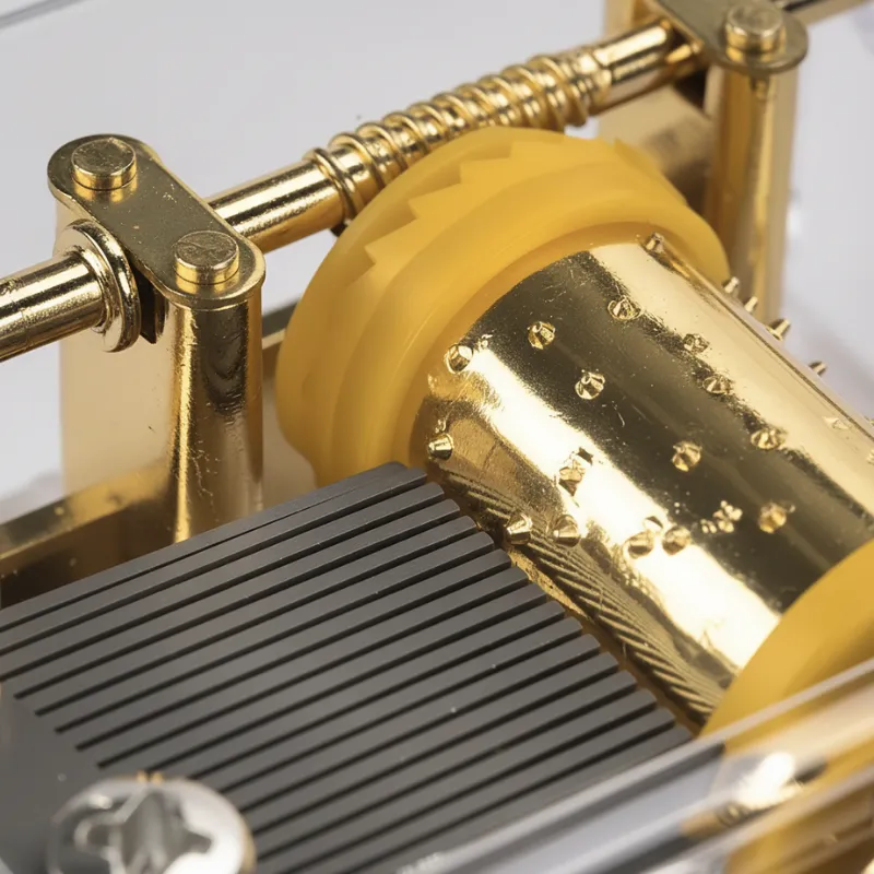 Utforskning med Hendene - Barn kan se tannhjul snurre og samhandle med musikken. Hver bruk inviterer til nysgjerrighet og glede over enkel mekanikk.