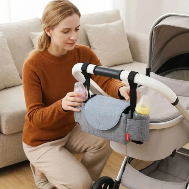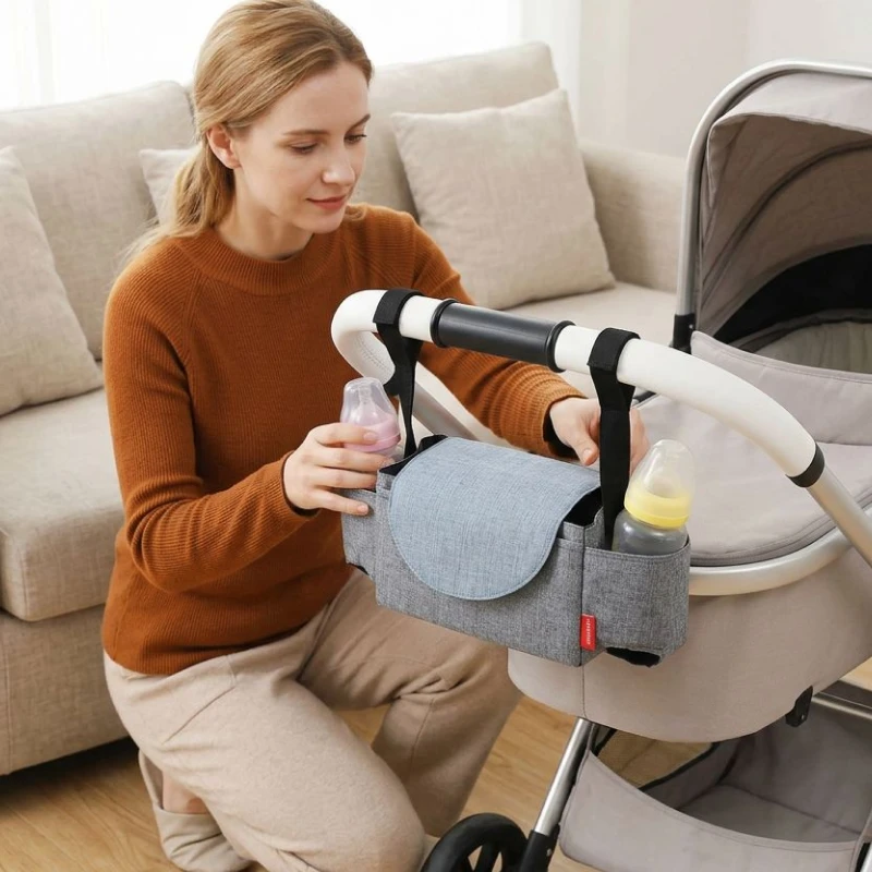 Nyt turene mens du vet at alle nødvendigheter holder seg ryddige og klare. Ha med våtservietter, snacks og flasker, uten å måtte lete eller fomle igjen. Alt får plass slik at den lille nyter hvert eventyr. Foreldre slapper av med visshet om at alt alltid har sin plass.