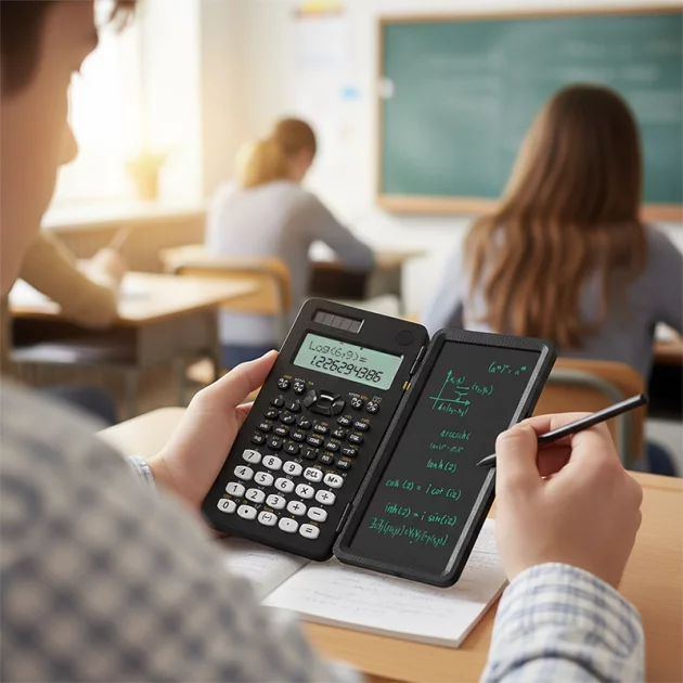 Sønnen min elsker å ha notatblokken festet rett ved siden av kalkulatoren. Han mister aldri regnestegene og sletter arbeidet sitt superraskt.