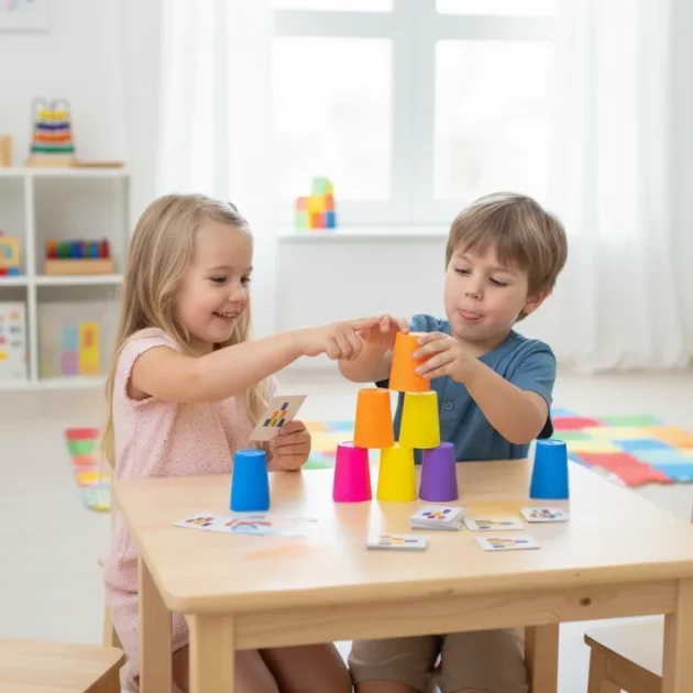 Vi kjøpte dette stablekopp-spillet til barna våre, og det har blitt vårt favorittspill på familiekvelder. De fargerike koppene får alle til å le og tenke raskt.
